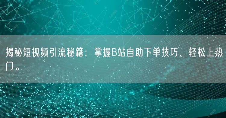 随着互联网的发展,短视频已成为大众获取信息、娱乐的重要方式之一。越来越多的人希望通过短视频平台展示自己的创意和才华,吸引更多关注和粉丝。本文将为你揭秘短视频引流秘籍,特别是掌握B站自助下单技巧,轻松让你的视频上热门。