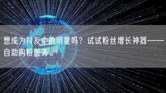 在抖音这个充满机遇的平台上,每一个有梦想的人都有机会成为明星。然而,粉丝数量的增长却是许多抖友面临的难题。如何快速增加粉丝,提升影响力呢?今天,我们要为大家介绍一种神奇的粉丝增长神器——自助购粉服务。