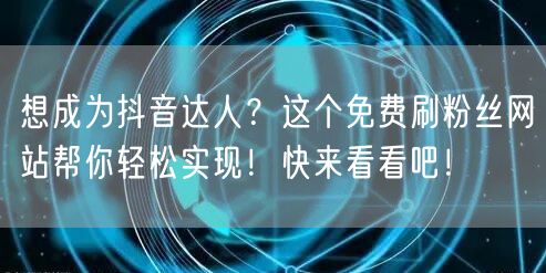 你是否梦想成为抖音达人,吸引无数粉丝关注?在抖音这个庞大的社交媒体平台上,拥有众多粉丝意味着更高的曝光率、更多的流量和更大的影响力。今天,我要向大家介绍一个神奇的网站,帮助你轻松实现这个梦想——一个免费刷粉丝的网站。