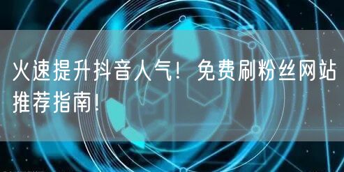 抖音作为当下最热门的短视频社交平台之一,拥有庞大的用户群体和极高的活跃度。在这个平台上,人气的高低直接影响到个人的影响力和内容的传播力度。本文将向大家介绍一些免费刷粉丝的网站,帮助你火速提升抖音人气。
