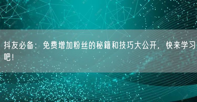 以上就是本文为大家公开的抖友秘籍和技巧,希望能帮助你免费增加抖音粉丝。记住,坚持优质内容创作和积极互动是关键。掌握这些技巧,轻松提升你的社交媒体影响力,让你的短视频更受欢迎!