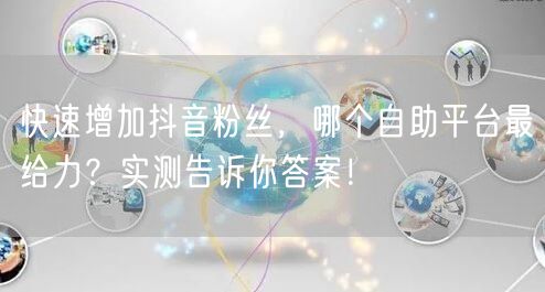本文详细探讨了如何快速增加抖音粉丝,通过实测多个自助平台,为你揭示哪个平台最给力。同时,还介绍了其他增粉建议,希望能帮助你轻松增加抖音粉丝。如果你正在寻找增加抖音粉丝的方法,不妨试试本文推荐的自助平台和增粉建议。