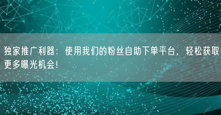 赶快加入粉丝自助下单平台,体验独家推广的魅力!轻松获取更多曝光机会,让您的产品脱颖而出!让我们一起创造更美好的商业未来!