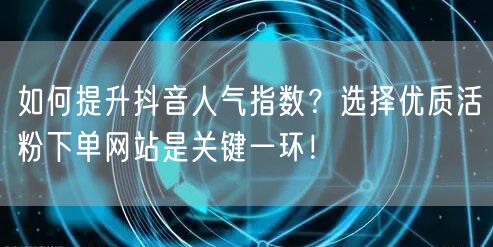 选择优质活粉下单网站是提升抖音人气指数的关键一环。通过辨别并选择优质的活粉下单网站,可以有效提高抖音账号的曝光率、互动率和影响力。同时,遵守平台规则、多元化推广以及保持与粉丝的互动与沟通也是提升人气指数的重要策略。