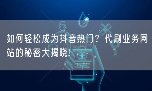 在抖音这个巨大的社交平台上,想要成为热门并非易事。除了需要优质的视频内容和创意,还需要一定的推广和曝光。这时,一些代刷业务网站应运而生,它们声称可以帮助用户轻松成为抖音热门。那么,这些代刷业务网站是如何操作的呢?