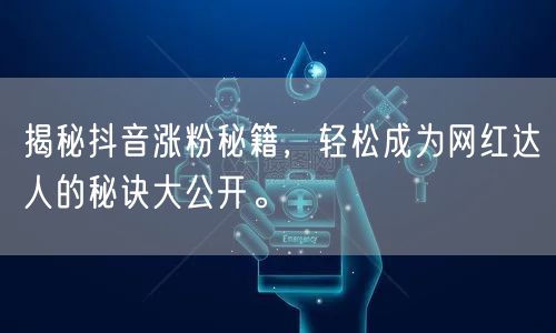 随着抖音的普及,越来越多的人希望通过这个平台成为网红达人。那么,如何快速有效地在抖音上增加粉丝数量呢?本文将为你揭秘抖音涨粉的秘籍,让你轻松掌握成为网红达人的秘诀。