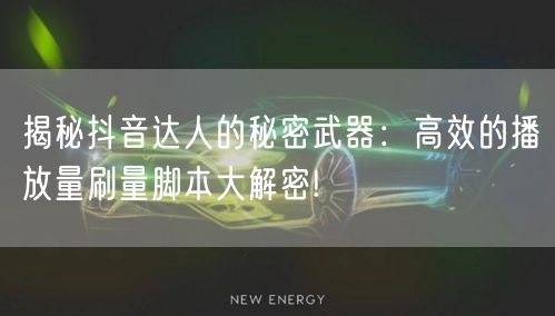 在抖音平台上,播放量是一个非常重要的指标,它直接影响着内容的曝光和用户的关注度。许多抖音达人拥有极高的播放量,那么,他们是如何做到的呢?是否存在一种高效的播放量刷量脚本?本文将带你一起探寻高效播放量的背后秘密。