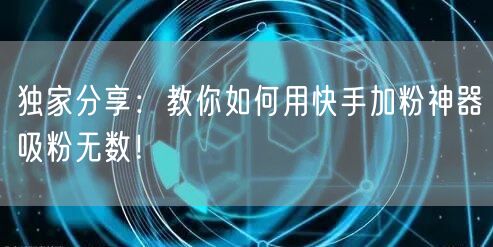 随着移动互联网的普及,短视频社交平台快手已经成为人们生活中不可或缺的一部分。越来越多的人希望通过快手平台展示自己的才华和魅力,吸引更多的粉丝关注。本文将为你独家分享如何使用快手加粉神器,轻松吸引无数粉丝关注,提升你的知名度和影响力。