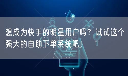 想要成为快手明星用户,不再是一个遥不可及的梦想。通过全新的自助下单系统,你只需要简单操作,就能轻松获得更多的曝光和粉丝。加入快手,使用自助下单系统,让我们一起助力你的明星梦!