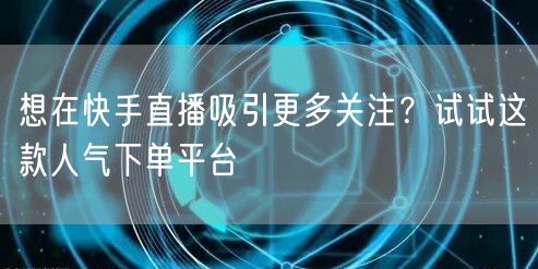 在快手直播这个充满活力和机遇的舞台上,如何吸引更多关注,提升个人影响力,成为每个主播面临的重要课题。今天,我要向大家介绍一款人气下单平台,帮助你轻松实现直播营销目标。