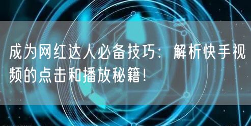 要想在快手平台上成为网红达人,并非一蹴而就。需要持续输出优质内容,积极与观众互动,掌握一定的技巧和方法。本文为你揭示了成为网红达人的必备技巧,希望能帮助你提升快手视频的点击和播放量,实现网红梦想。