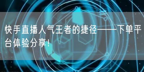 随着移动互联网的飞速发展,短视频平台如快手等已成为大众娱乐、社交的重要场所。在快手直播中,许多主播通过聪明才智和勤奋努力吸引了大量粉丝,成为了人气王者。本文将为大家分享成为快手直播人气王者的捷径,特别是通过下单平台的体验,助您快速提升直播间人气。