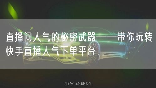 通过本文,你将掌握玩转快手直播人气下单平台的技巧,提升直播间人气,让你的直播事业更上一层楼!