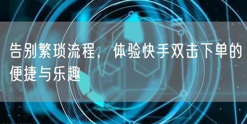 告别繁琐流程,体验快手双击下单的便捷与乐趣。快手的推出为消费者带来了全新的购物体验,让购物变得更加简单、高效。如果你还在为繁琐的购物流程烦恼,不妨试试快手双击下单,感受省时省力的购物体验吧!