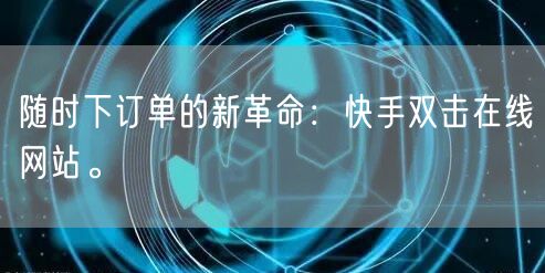 总之,快手双击在线网站的新革命为我们带来了更加便捷、高效的购物方式。随时下订单的新模式让我们不再受到时间地点的限制,真正实现了购物的自由。