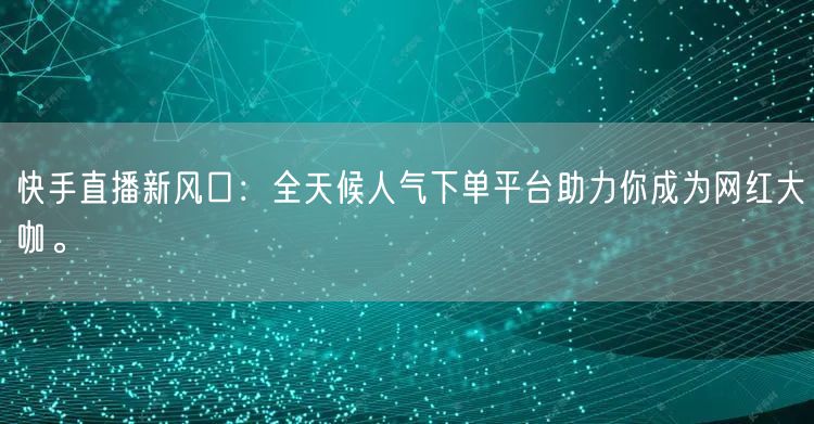 通过本文的介绍,相信读者对快手直播的新风口和全天候人气下单平台有了更深入的了解。要想成为网红大咖,需要把握机遇,提升内容质量,积极参与平台活动,建立良好的粉丝关系。希望读者能够通过这些建议,实现自己的直播梦想。