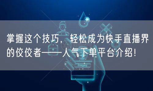 掌握这个技巧,轻松成为快手直播界的佼佼者。通过人气下单平台,不仅可以提高直播人气,还能优化直播内容,带来更多收益。希望本文的介绍能帮助你在快手直播界取得更好的成绩。