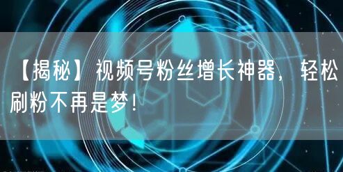 在数字化时代,视频号的粉丝数量成为了衡量影响力的重要指标之一。许多视频号主人渴望拥有更多的粉丝,以便扩大影响力并实现个人或商业目标。本文将向你介绍一款神秘的视频号粉丝增长神器,帮助你轻松实现刷粉的梦想!