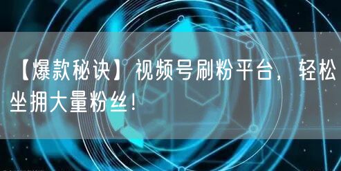 随着互联网的普及和社交媒体的飞速发展,视频号已成为人们获取信息、交流互动的重要平台。如何在这个竞争激烈的市场中脱颖而出,坐拥大量粉丝,成为每个视频号运营者关注的焦点。本文将为你揭示爆款视频号的秘诀,带你探索高效刷粉平台,轻松实现粉丝数量的快速增长。