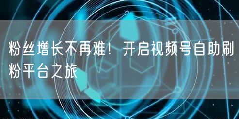 随着互联网的普及和社交媒体的飞速发展,越来越多的人开始通过视频号分享自己的见解和创意。然而,如何快速增长粉丝群体,让更多人关注自己的内容,成为了许多视频号运营者面临的难题。今天,我们将为大家介绍如何通过开启视频号自助刷粉平台,轻松实现粉丝增长。