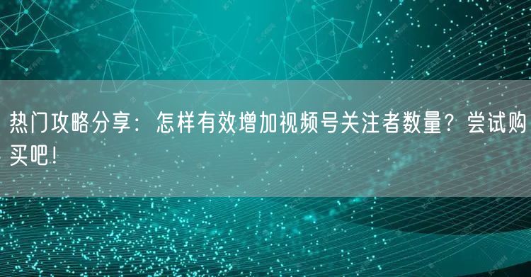 在当今社交媒体盛行的时代,视频号作为内容传播的重要平台,关注者数量的多少直接影响到内容的传播范围和影响力。如何有效增加视频号关注者数量?这是许多内容创作者关注的焦点。本文将为你分享一些热门攻略,并探讨购买关注者的策略。