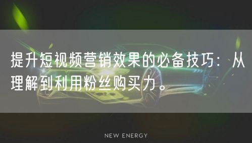 总之,提升短视频营销效果需要综合运用多种技巧。从理解目标受众、创作优质内容、与粉丝互动到利用粉丝购买力实现营销转化,每一步都至关重要。通过不断尝试和优化,你将掌握短视频营销的精髓。