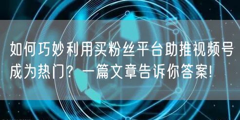 随着互联网的普及和社交媒体的兴起,视频号已成为人们获取信息、娱乐的重要渠道之一。然而,如何在这个竞争激烈的市场中脱颖而出,成为热门视频号,却是许多内容创作者面临的挑战。本文将为你揭示一个有效的策略——巧妙利用买粉丝平台助推视频号成为热门。