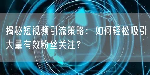 随着互联网的普及和科技的快速发展,短视频已经成为大众获取信息、娱乐消遣的重要渠道之一。越来越多的个人和企业开始利用短视频平台引流,希望借此吸引大量有效粉丝关注。本文将为你揭秘短视频引流策略,助你轻松吸引粉丝关注。