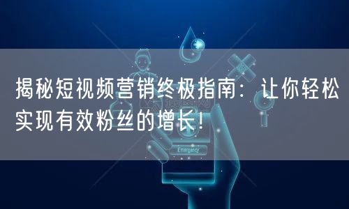 本文详细阐述了短视频营销的终极指南,包括内容创作、平台运营、粉丝增长策略、用户留存与转化等方面。通过遵循这些技巧和方法,你将能在短视频平台轻松实现有效粉丝的增长。未来,随着短视频平台的不断发展,我们将继续探索更多的短视频营销技巧和策略。