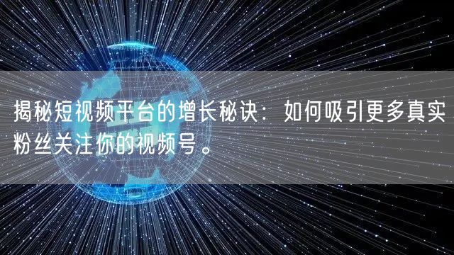 随着短视频平台的兴起,越来越多的人开始关注如何通过视频号吸引更多真实粉丝。本文将为你揭示短视频平台的增长秘诀,帮助你提升视频号的关注度。