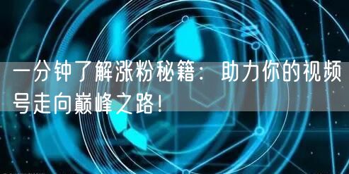 一分钟了解涨粉秘籍,从优质内容、精准定位、多平台推广、互动交流、定期更新等方面入手,助力你的视频号走向巅峰之路!
