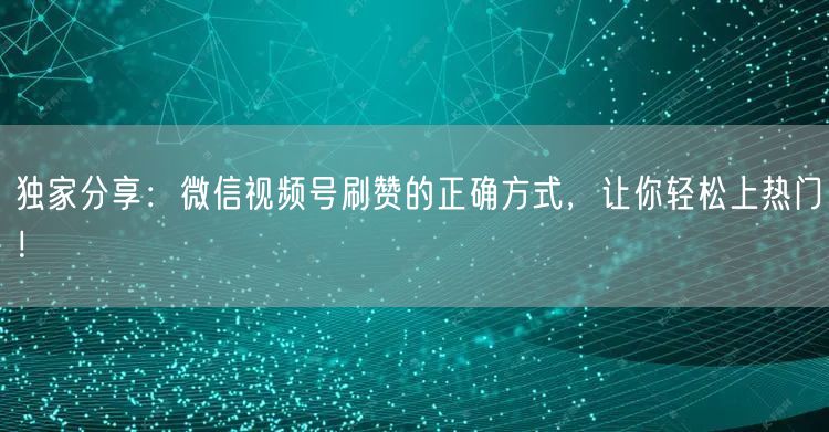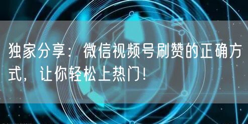 摘要:本文将教你如何正确刷赞微信视频号,让你轻松登上热门,吸引更多观众。