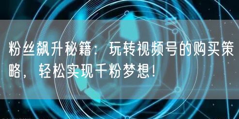 在竞争激烈的社交媒体环境中,要想快速提升粉丝数量,单靠优质内容是不够的。购买策略是加速粉丝增长的重要途径之一。通过了解并掌握视频号的购买策略,可以有效地提高账号的曝光率,吸引更多潜在粉丝的关注。