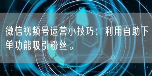 总之,通过巧妙利用微信视频号中的自助下单功能,结合吸引人的内容和优惠活动,可以有效吸引粉丝,提升视频号的曝光和影响力。在运营过程中,不断优化策略,关注数据分析,诚信经营,遵守平台规则,将有助于你在微信视频号领域取得成功。