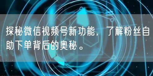 随着科技的不断发展,微信视频号也在不断创新,近期推出的新功能“粉丝自助下单”引起了广大用户的热议。今天,我们就一起来探秘这个功能背后的奥秘。