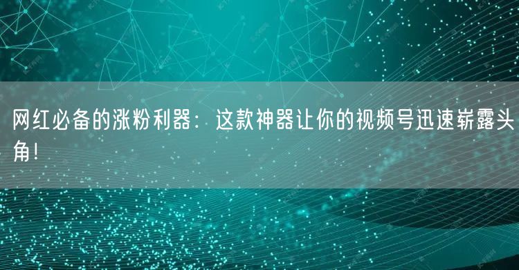 在数字化时代,社交媒体的影响力日益增强,越来越多的人希望通过视频号成为网红。然而,想要在众多竞争者中脱颖而出并不容易。这时,一款涨粉利器就显得尤为重要。今天,我们就来聊聊网红必备的涨粉利器,帮助你轻松实现视频号的迅速崭露头角!