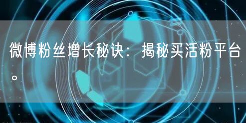 通过本文的介绍,相信大家对如何利用买活粉平台实现微博粉丝增长有了更深入的了解。在实际操作中,还需结合个人或企业的实际情况,制定合适的策略,不断提升微博账号的影响力。