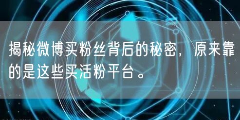 近年来,微博买粉丝现象屡见不鲜,许多用户为了追求所谓的关注度增长,不惜花费大量时间和金钱购买粉丝。其中,买活粉平台成为了他们追求粉丝增长的重要渠道。本文将揭示背后的秘密真相,带您了解这一现象的真相。