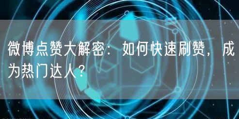 微博作为社交媒体的巨头之一,拥有庞大的用户群体。如何在这个平台上快速积累人气,成为热门达人?本文将为你揭秘微博点赞的技巧,助你轻松实现!