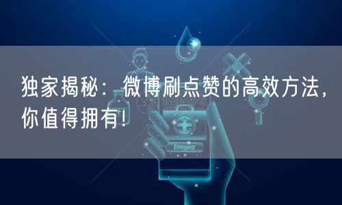 本文为你独家揭秘了微博刷点赞的高效方法,包括优质内容为基础、精准定位目标群体、运用热门话题、合理互动以及运用微博推广技巧等方面。同时强调了社交媒体营销和微博推广的重要性。希望这些方法能帮助你提升微博点赞数,扩大影响力!
