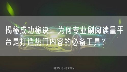 随着互联网的发展,内容的传播越来越依赖于网络平台的推广。在这个信息爆炸的时代,如何让自己的内容在众多信息中脱颖而出,成为热门话题,成为了每个内容创作者关注的焦点。专业刷阅读量平台应运而生,成为了打造热门内容的必备工具。本文将深入探讨为何专业刷阅读量平台如此重要,并揭示其背后的成功秘诀。