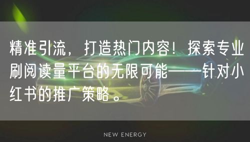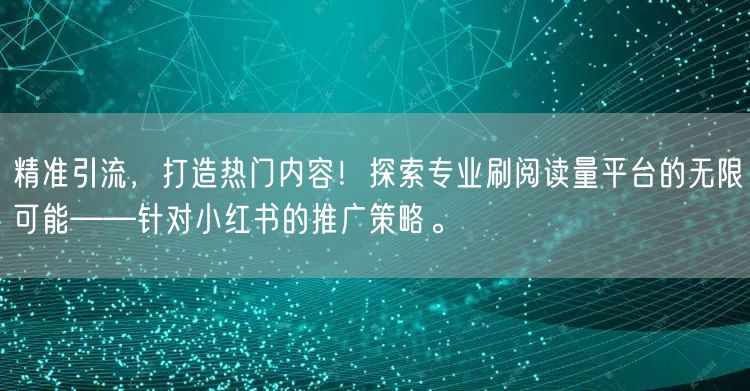 在当今数字化时代,社交媒体平台已经成为各大品牌和个人推广的重要渠道。小红书作为一个拥有庞大用户群体的社交平台,吸引了众多商家和创作者的目光。如何在小红书上实现精准引流,打造热门内容,成为了许多人心中的难题。本文将带你探索专业刷阅读量平台的无限可能,为你提供有效的推广策略。