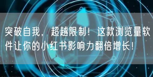 在数字化时代,小红书已成为众多用户分享生活、展示自我的重要平台。如何在这个竞争激烈的社交环境中脱颖而出,提升个人品牌的影响力,成为每个用户都关注的问题。今天,我要为大家介绍一款浏览量软件,它将助你在小红书上突破自我,超越限制,实现影响力翻倍增长!
