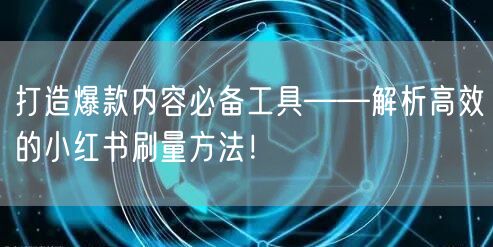 在当今社交媒体盛行的时代,小红书已成为众多品牌和创作者争相入驻的平台。如何在这个竞争激烈的市场中脱颖而出,打造爆款内容,吸引更多目标受众,成为每个创作者关注的焦点。本文将为你揭示高效的小红书刷量方法,帮助你打造爆款内容。