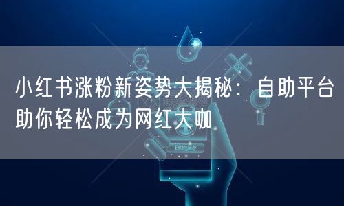 自助平台是帮助用户在小红书上快速涨粉的重要工具。通过自助平台,用户可以更好地展示自己的个人品牌和特色,吸引更多关注。