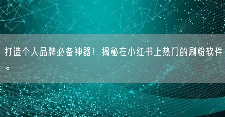 在这个社交媒体影响力决定一切的时代掌握一些个人品牌神器显得尤为重要。通过本文的探讨我们了解了小红书上热门的刷粉软件如何助力个人品牌的打造。希望这些神器能够帮助你在社交媒体上脱颖而出成为真正的影响力中心。随着科技的不断发展未来还将有更多个人品牌神器涌现让我们拭目以待!